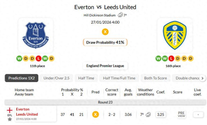 Everton are undefeated in 10 of their last 12 games against Leeds United in Premier League