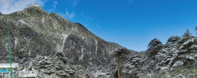 雪落得极轻,似玉屑纷飞,粘在松针上便凝住了,远望去,墨绿的枝桠托着蓬松的白雪,像极了国画里的留白技法。山腰间的云雾被雪色染淡,与皑皑雪峰缠绵相依,阳光偶尔穿透云层,洒在雪面上折射出细碎的光,让整座山都活了起来,不是单调的白,而是层次分明的银灰、苍绿与乳白。