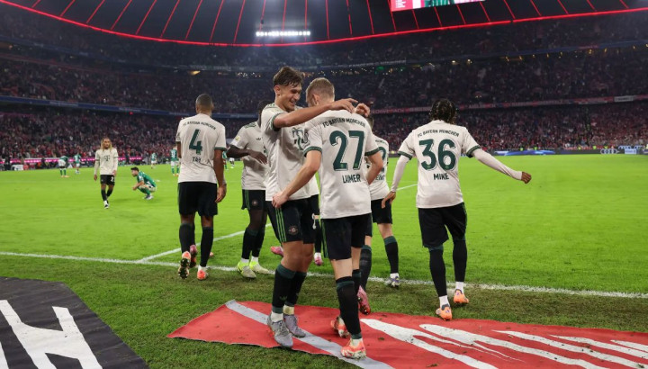 孔帕尼率领的这支球队在德甲可谓横冲直撞,无人能挡。本场比赛,拜仁一直在对不莱梅的球门进行狂轰乱炸。第22分钟,拜仁连续射门被挡,最后奥利塞传中,塔脚后跟碰了一下皮球,球进了!1-0!