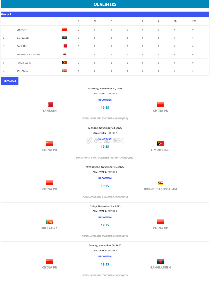 虎扑09月23日讯媒体人丁旭消息,亚足联公布2026亚足联U17亚洲杯预选赛赛程。